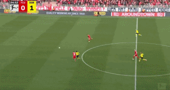 比赛进行到第17分钟,多特蒙德率先打破僵局,0-1。多特蒙德大禁区前打出精彩配合,罗伊斯倚住对方后卫做球,达胡德跟进后送出直塞,罗伊斯杀到禁区左肋起脚打门,皮球从门将裆下钻进网窝。在这次进球的过程中,多特蒙德的传切配合很精彩。
